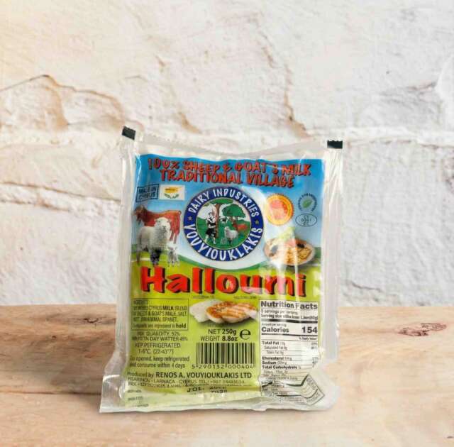 This traditional Halloumi is made from sheep and goat’s milk from Pittas in Cyprus. Halloumi is a hugely versatile cheese, its high melting point means it can be grilled, fried, and even barbequed making it a popular ingredient in vegetarian recipes. You can slice it fresh- it’s perfect with fresh fruit, salad or a favourite wine. Grill it – it doesn’t melt, so it’s great for summer barbecues. Grate it- and pasta becomes more delicious or fry it – without the need of oil or butter and serves as a meat replacement.