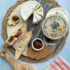 Cheese should be unpacked and stored in a cool place, ideally around 5 degrees. Take out about an hour before serving, and allow to come to room temperature. Leaving cheese come up to room temperature (“to chambre”) allows it to develop a fuller, more aromatic flavour. Beware temperatures that are too warm (hot kitchen) and try and let the cheese come up to temperature in a relatively cool place like a cool pantry. Harder cheeses can need a little more time than softer ones.