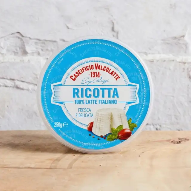 An Italian Ricotta from Caseificio Valcolatte is produced only with 100% Italian milk.