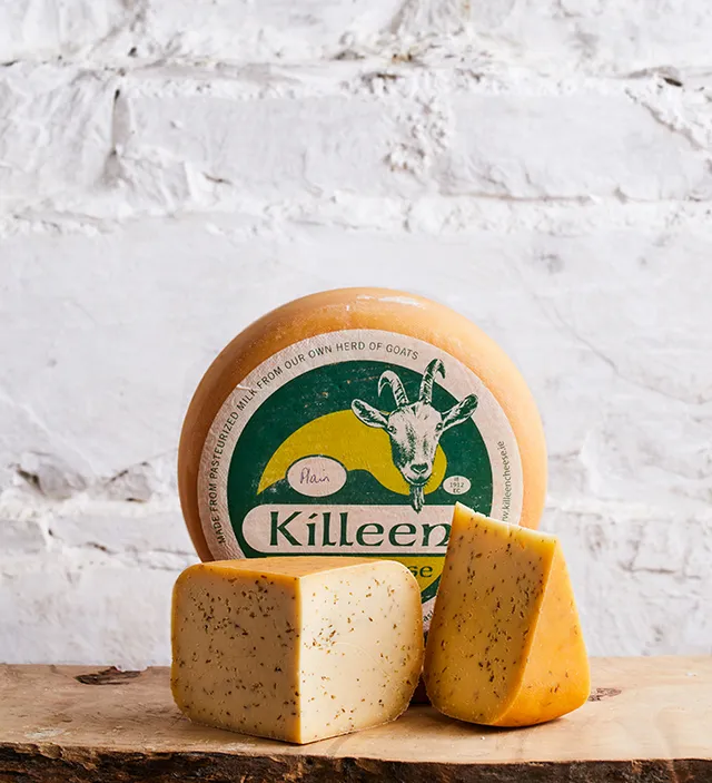 Dutch-born Marion Roeleveld has been making Killeen’s goat’s cheese at the Killeen Millhouse outside Portumna since 2005. Before coming to Ireland Marion trained in cheesemaking in her native Netherlands. In-depth formal training of this sort is rare amongst Irish farmhouse cheesemakers and Marion’s technical expertise enabled her to develop cheeses for a number of different producers.