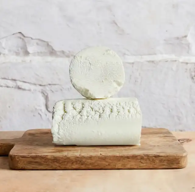 A miniature goat log with smooth texture and mild, slightly piquant, citrusy flavour.