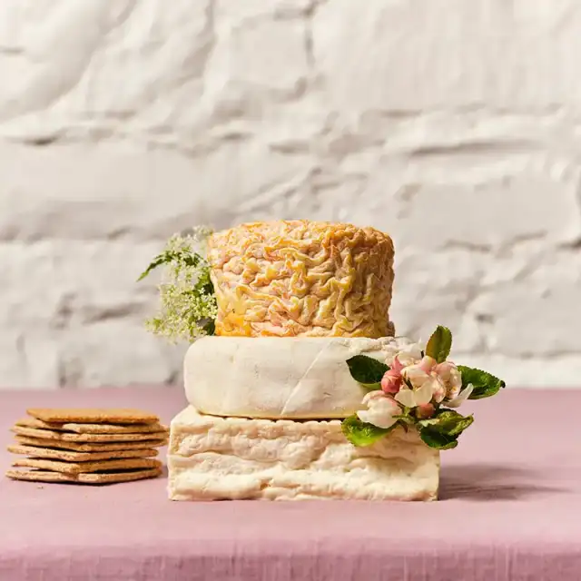Our wished rind selection of cheeses is delicate in texture with great flavour. Mini washed Rind cheese cake works for a party size of 8-12 people.