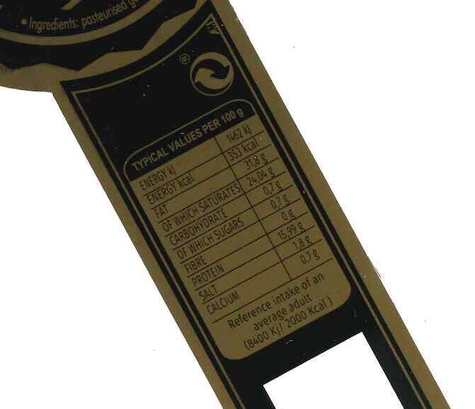 Ingredient, Allergens in Bold: Goats Milk, Salt, Animal rennet, Lactic ferments