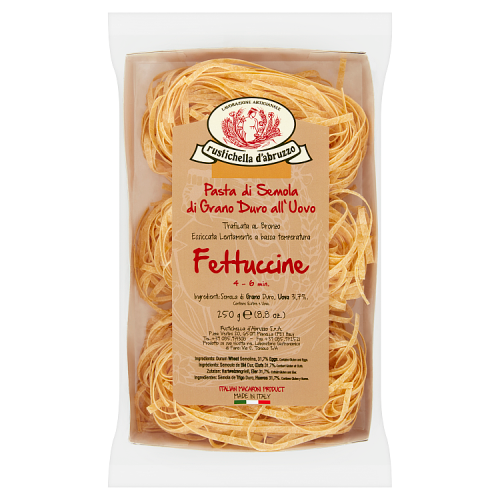 Rustichella d’Abruzzo Fettuccine is an Italian egg pasta made with selected durum wheat semolina. Perfect for thin sauces like passata and pestos